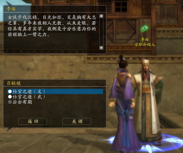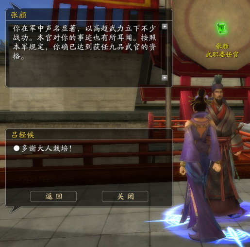 官**号也有属性哦,可以提升自身能力,另外我们做官后,可以用功勋换到相应的官印,这官印也有较好的属性,这些东西都是掌管在御前侍郎的手中,跟他换取即可,这里要提醒您,官印只能同时装备一个,您要考虑一下用什么样的官印,因为文官官印和武官官印属性有所不同。美女军候,帅气,慢慢欣赏。 |