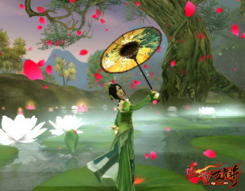 撑伞奏笛 享受三国写意人生