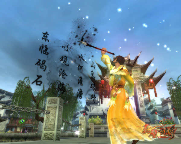 自《赤壁》推出动态粒子特效之后,游戏的画质提升到了一个全新的层次,三国世界变的光怪陆离,让所有玩家眼睛一亮。而在全新推出武器配饰“笔”中,动态粒子技术全新引入。通过使用该笔,将在空中挥洒出水墨一般的诗句,诗句则通过动态粒子特效凝聚在一起,渐渐的呈现整首诗句。同时,水墨特效配合古诗句,古香古色,完美整的传承了中国经典文化。