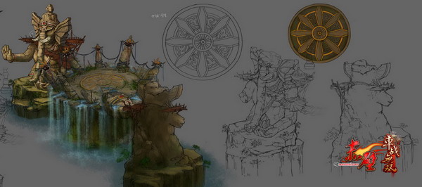 七擒孟获战场可以说是《赤壁》最具特色的场景之一,神秘的沼泽森林、庞大的奇山异石、巨型的宫殿等场景都等着你的开发。