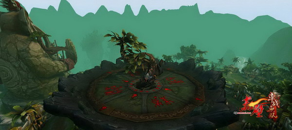 两座巨象之间是一个圆形的角斗场,在这里玩家将挑战孟获的夫人-祝融,虽说历史上描述祝融为祭祀,但是蛮族的野性和战斗欲望并没有丢弃。