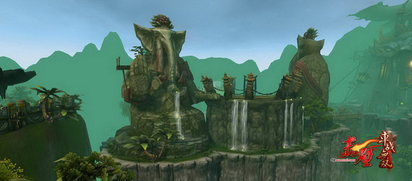 从远景来看,仿佛两个超大的巨象石化一般,背对背蹲坐在整个山崖两旁。通往第一座巨象地方将是孟获的主力将领木鹿大王,在这里玩家将挑战木鹿大王,当征服他后将开启通往巨象之路。